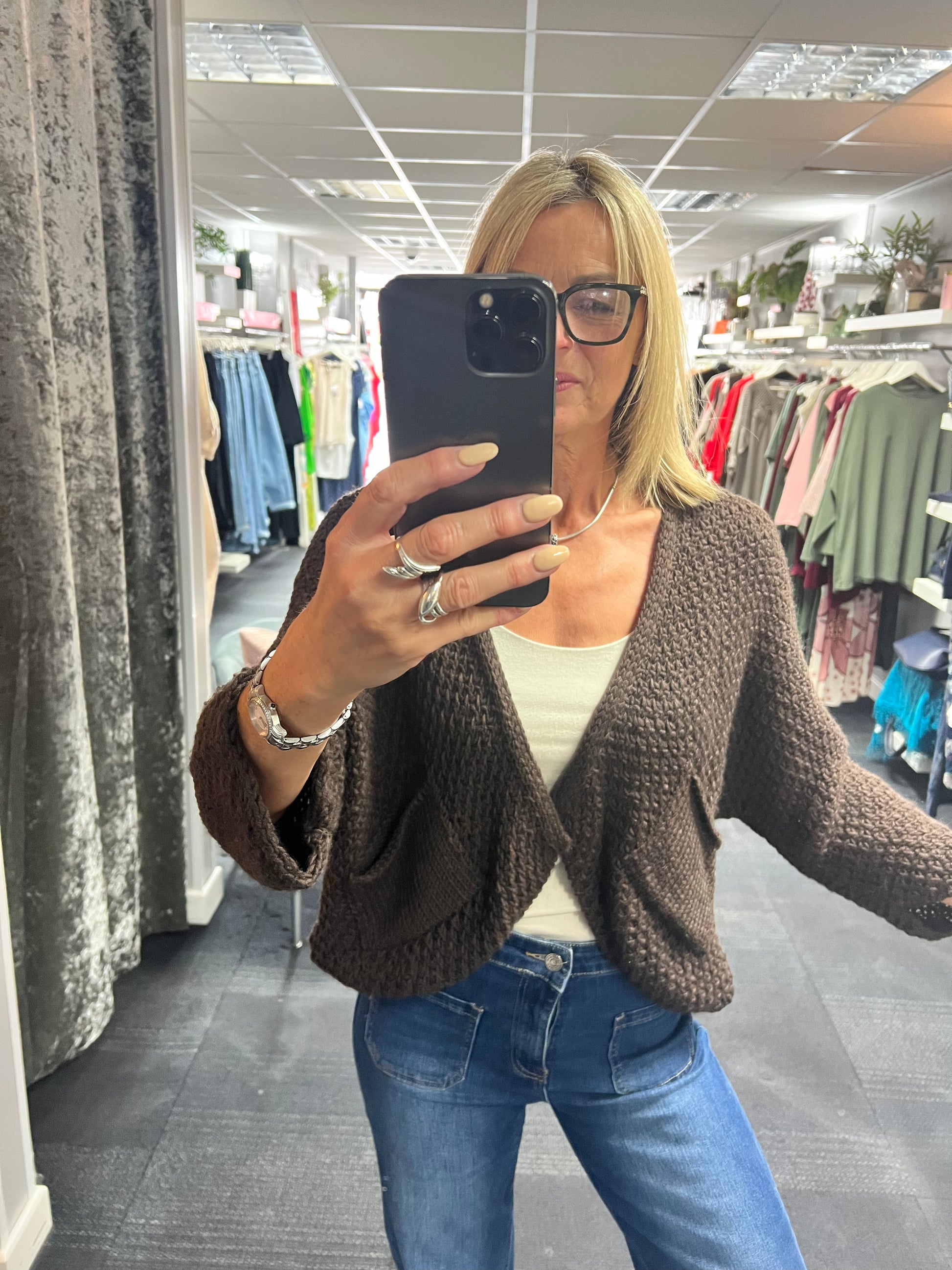 Waffle Pocket Open Cardigan